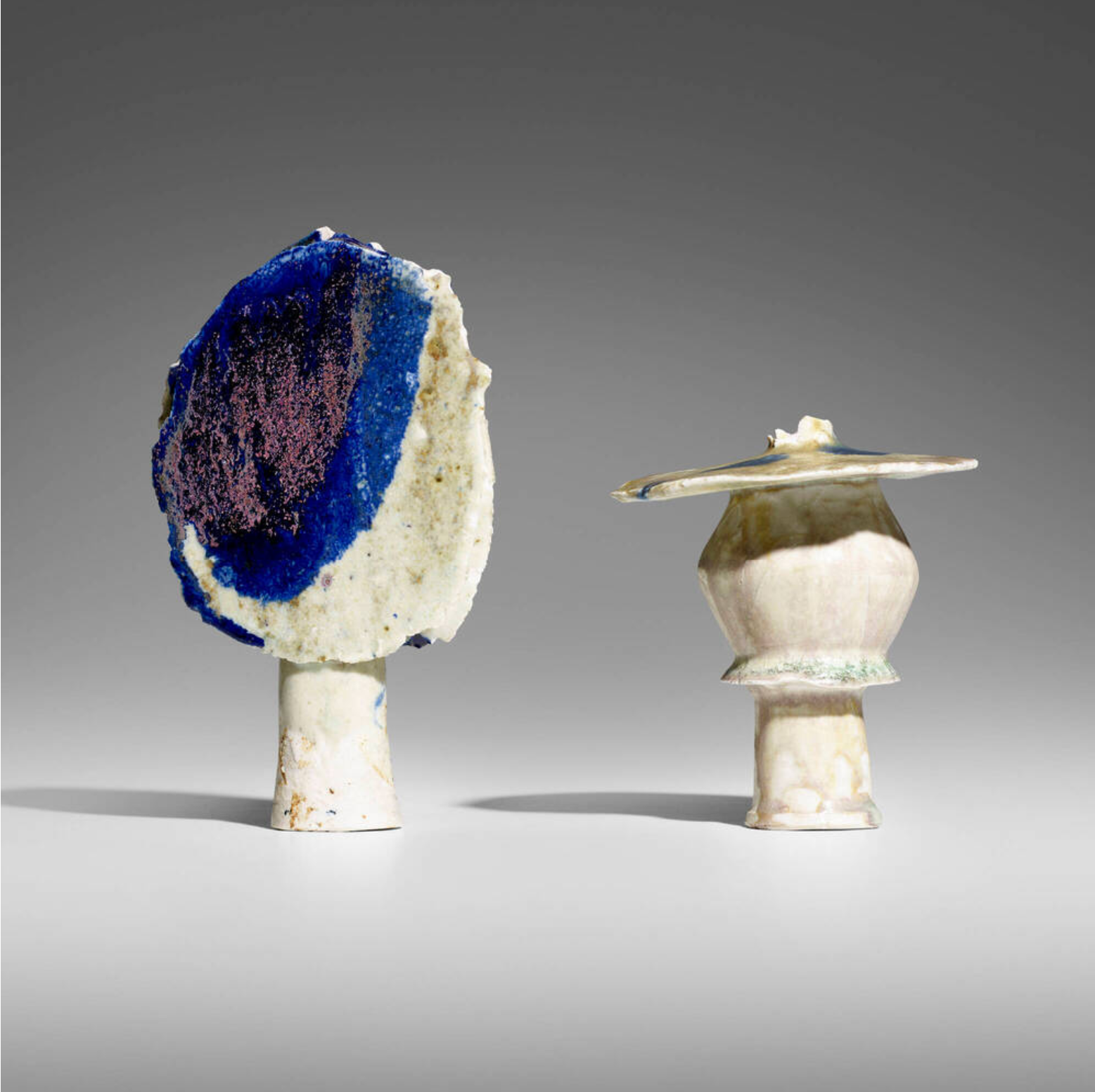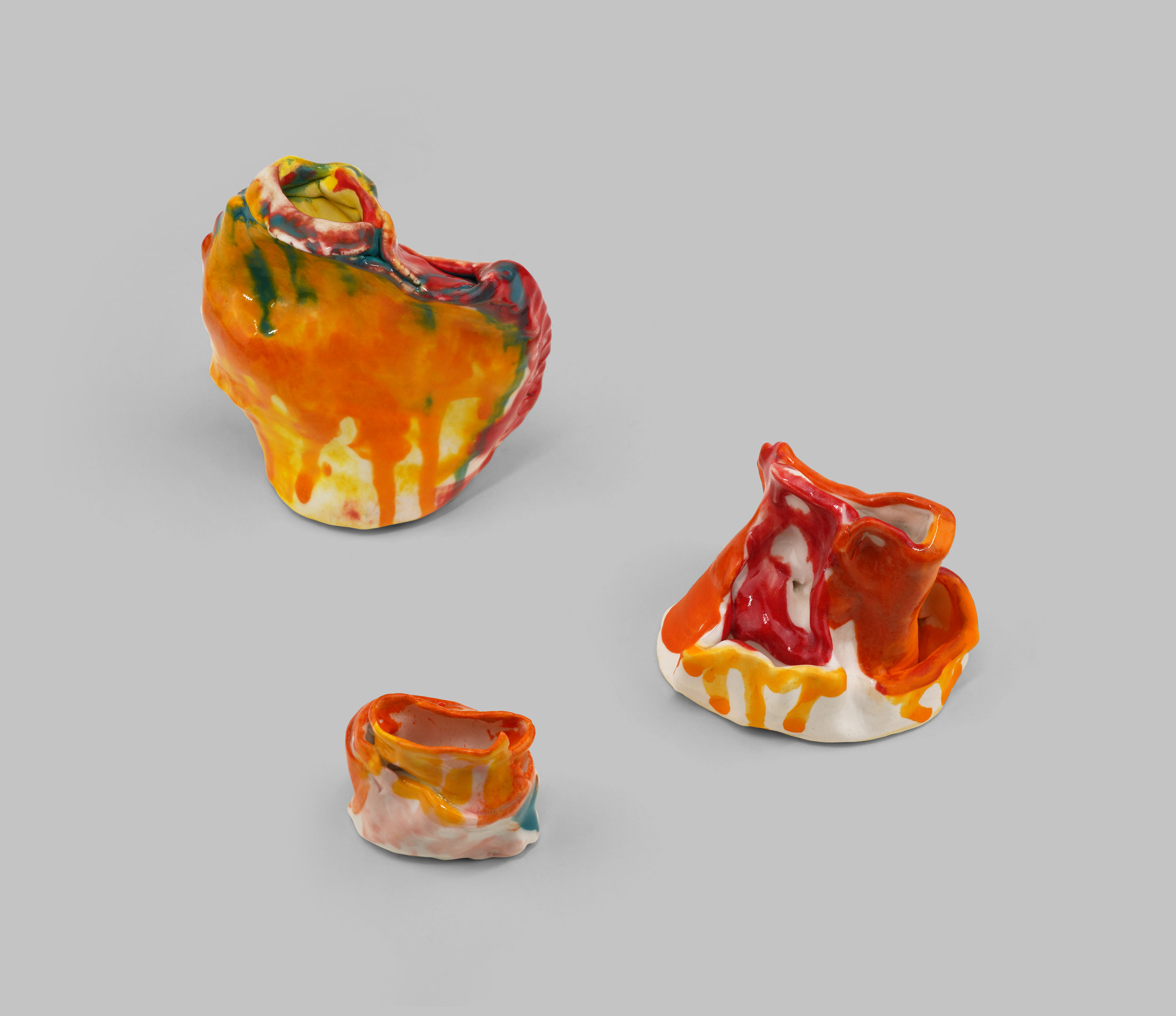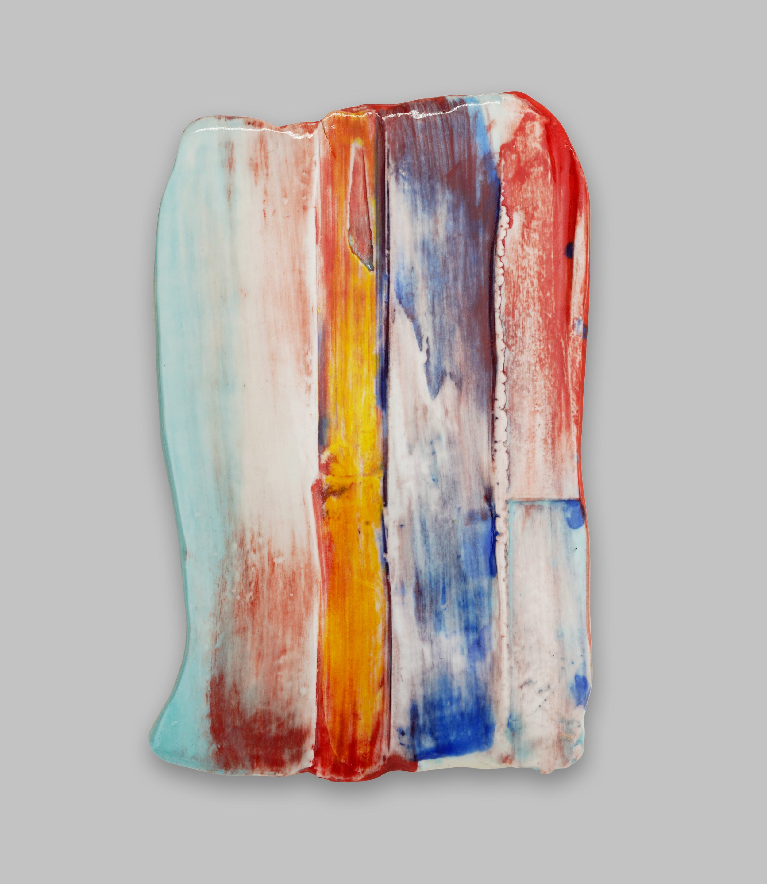 Susan Thompson (2021) writes: “Across each transposition of mediums, the through line of Amer’s work remains a love of painting, however deferred and redirected. The problematic of how to paint outside the field of capital ‘P’ painting has followed her throughout her career. … For Amer, one of the most invigorating aspects of ceramics is the potential to merge sculpture and painting by manipulating both form and surface.”