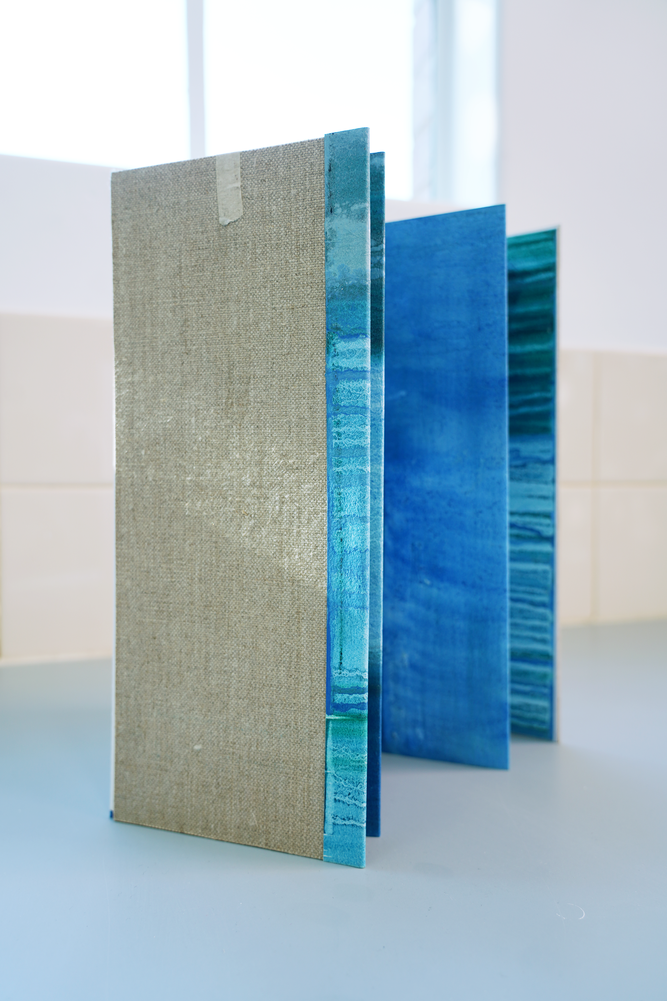 Book 1 and 2 (both oil on Arches paper) are dressed with linen covers sourced from offcut linen rolls.