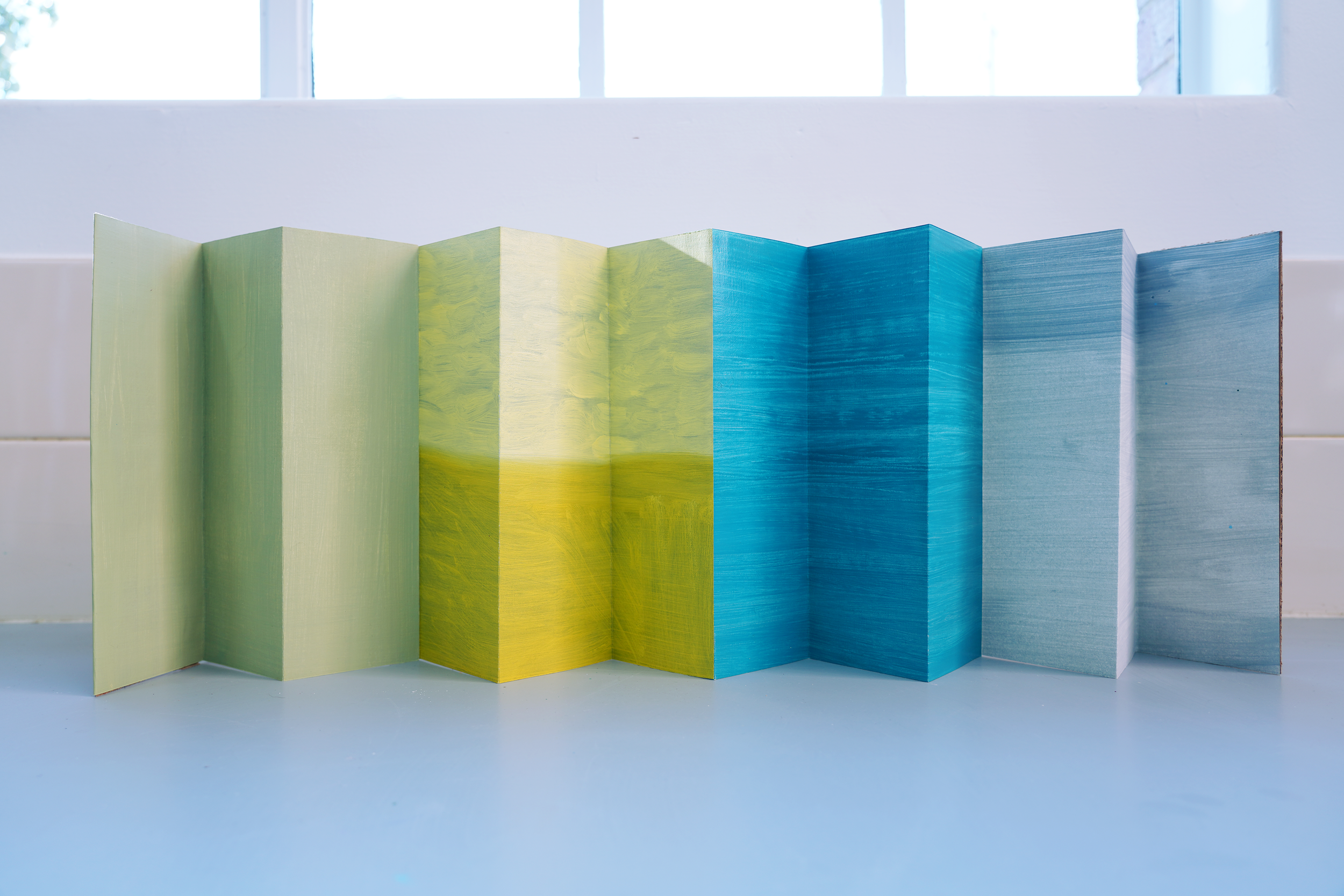Each book is a study of colour and surface. The folded page introduces ambiguity to their relationship — where one section ends, another begins, however they continue to function as a whole, even when collapsed.