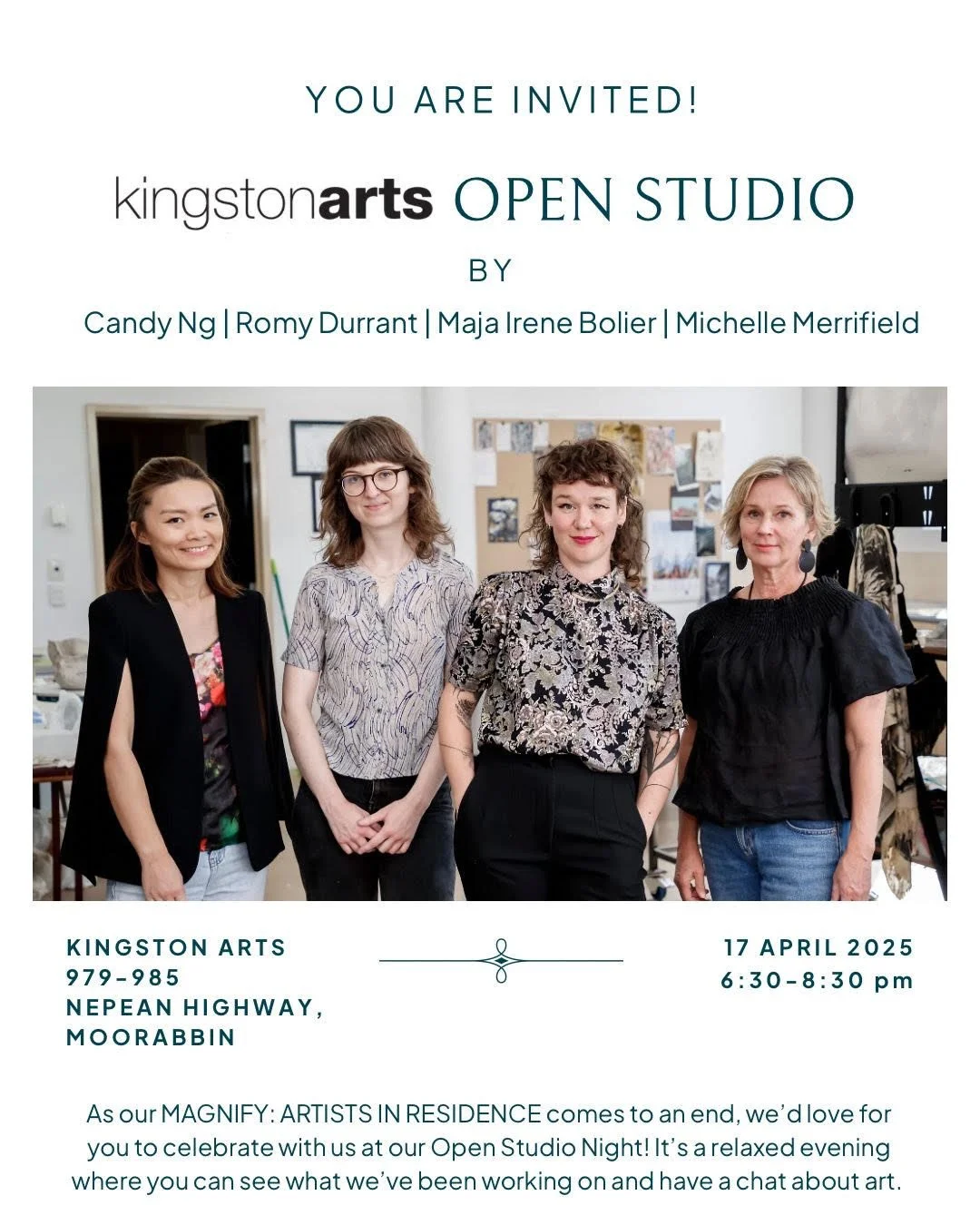 I was privileged to work alongside Candy Ng, Maja Irene Bolier and Michelle Merrifield during my time at Kingston Arts. I will remember and continue to take inspiration from their boldness of ideas and craft, and the kindness and openness each of them offered to our little bubble, our haven away from home, in the spirit of true community.